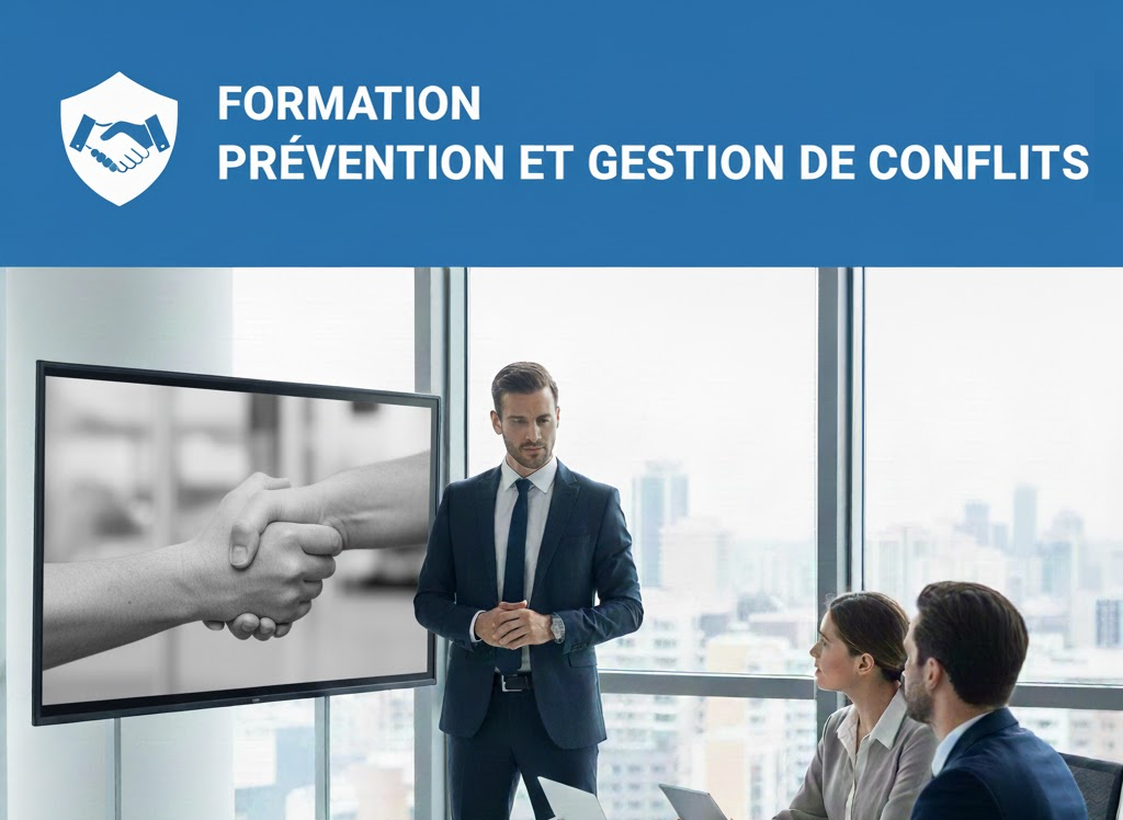 Notre formation en Prévention et Gestion de Conflits est un investissement stratégique offert exclusivement en entreprise (et disponible partout au Canada et en Europe) afin de garantir une adaptation maximale à votre contexte spécifique. Nous offrons des sessions flexibles (1 ou 2 jours, ou deux capsules de 2,5 heures chacune) avec des exercices d’analyse de situations conflictuelles réelles et la mise en place de solutions concrètes.